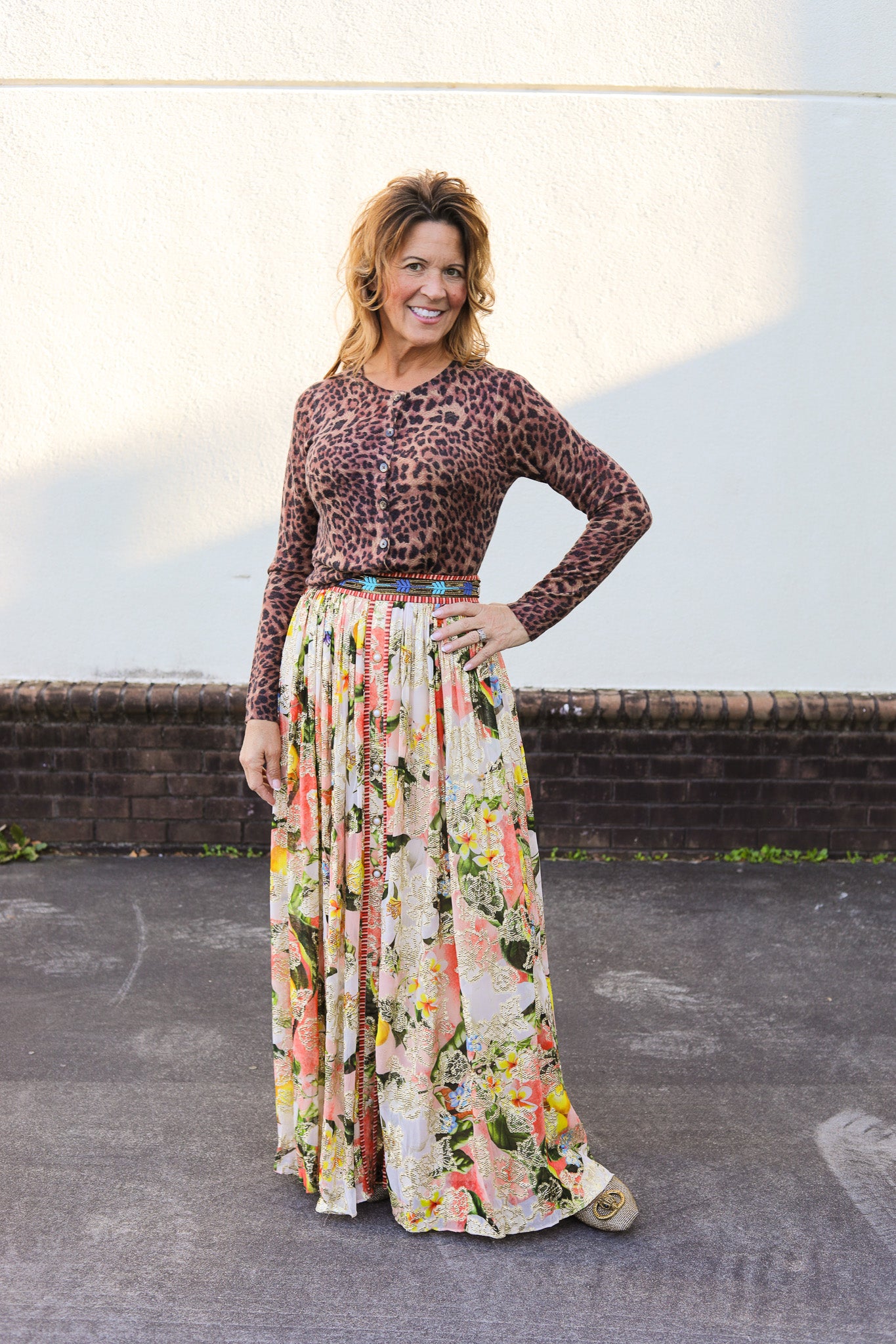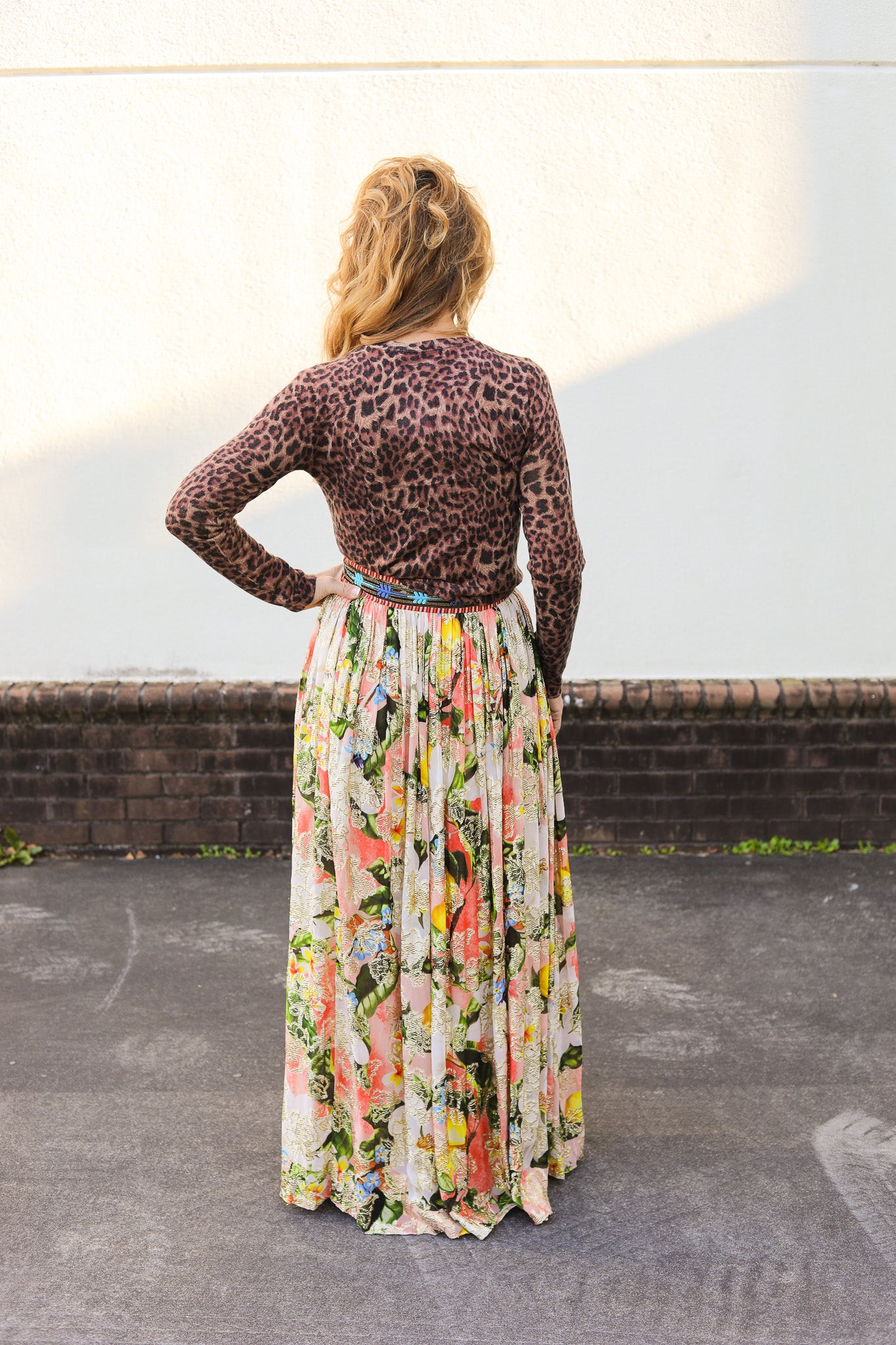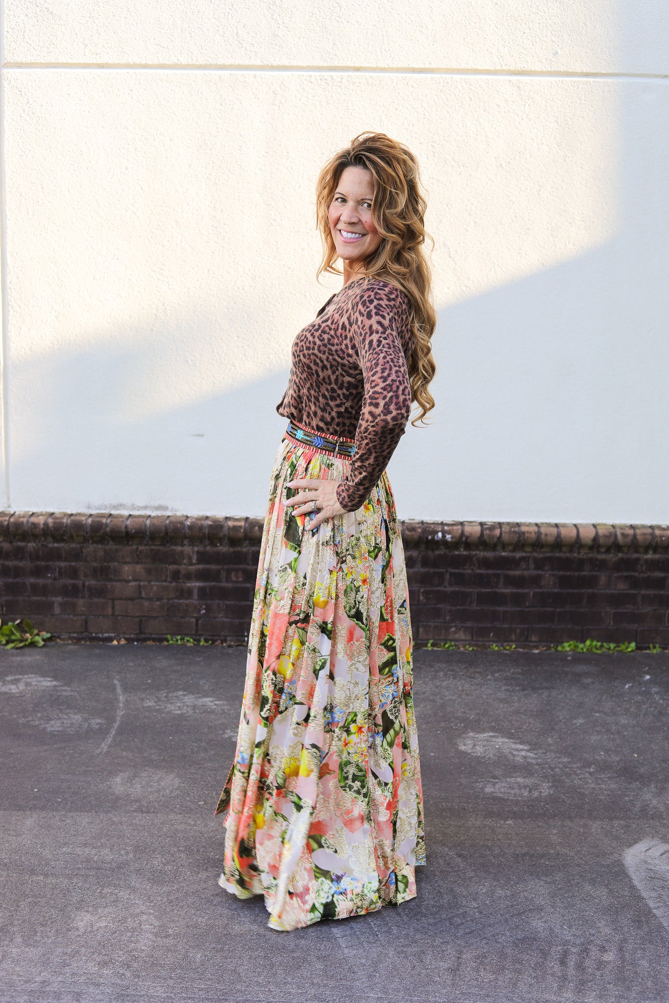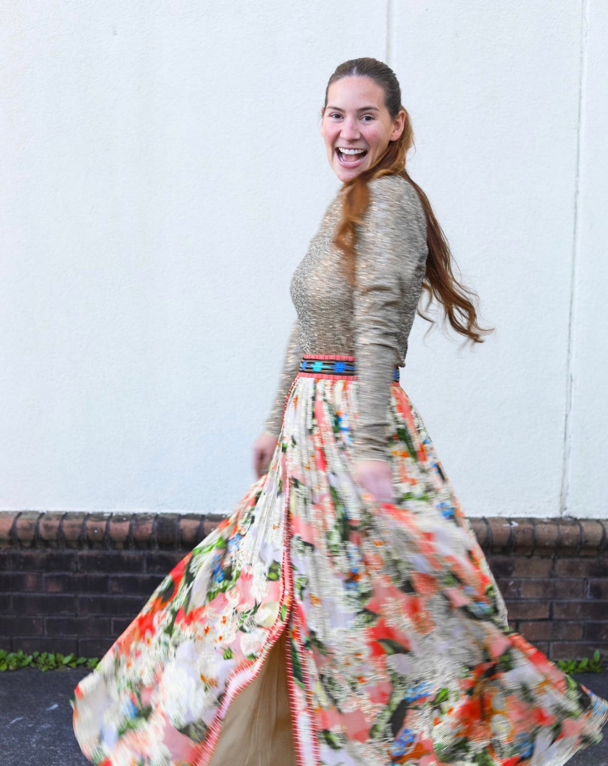 Turn heads in the Hailey Skirt, a flowy, floral maxi crafted from shimmer-threaded viscose lurex georgette. With a flattering front slit and vibrant spring hues, this statement piece adds sparkle and sophistication to any look. Features a beaded band waist with a side zipper.