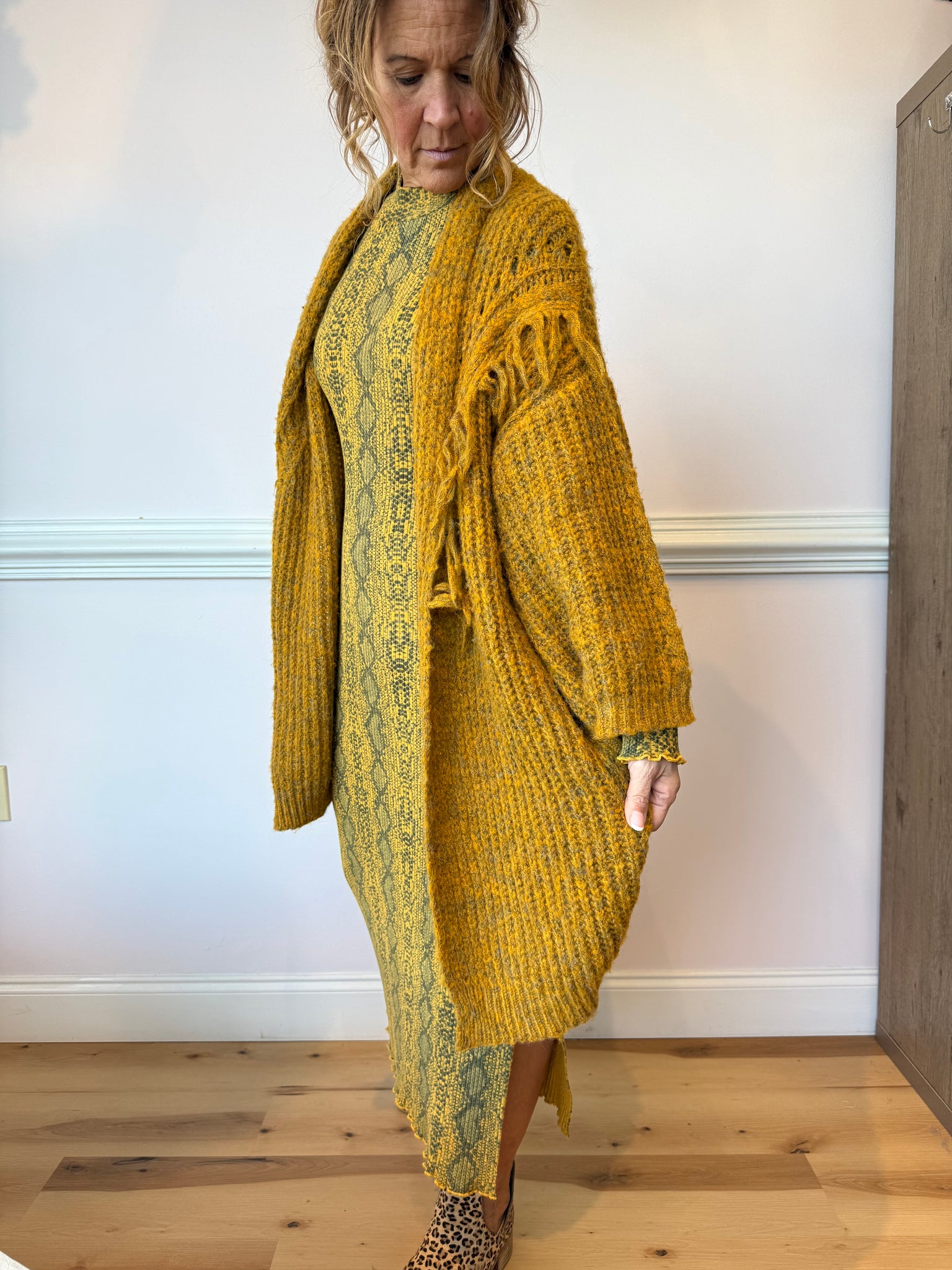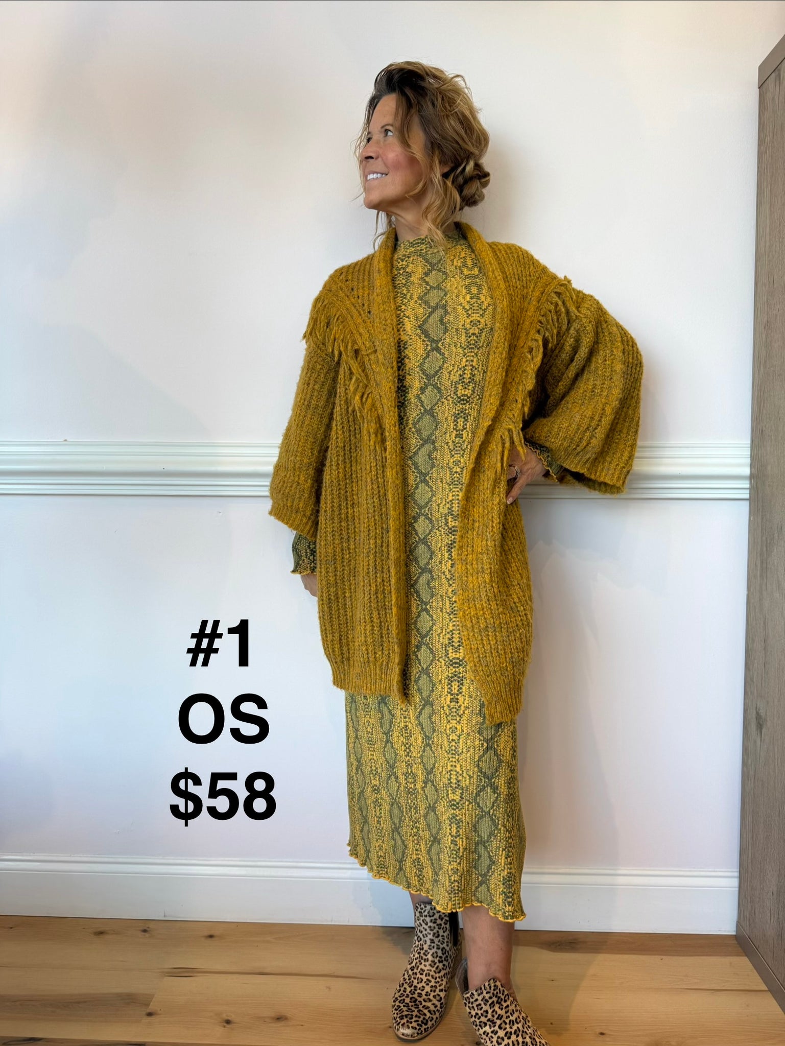 • #1  Anthropologie Stevie Boho Mustard Yellow Shag Cardigan Sweater - One Size (OS) - $58 (Has some piling)