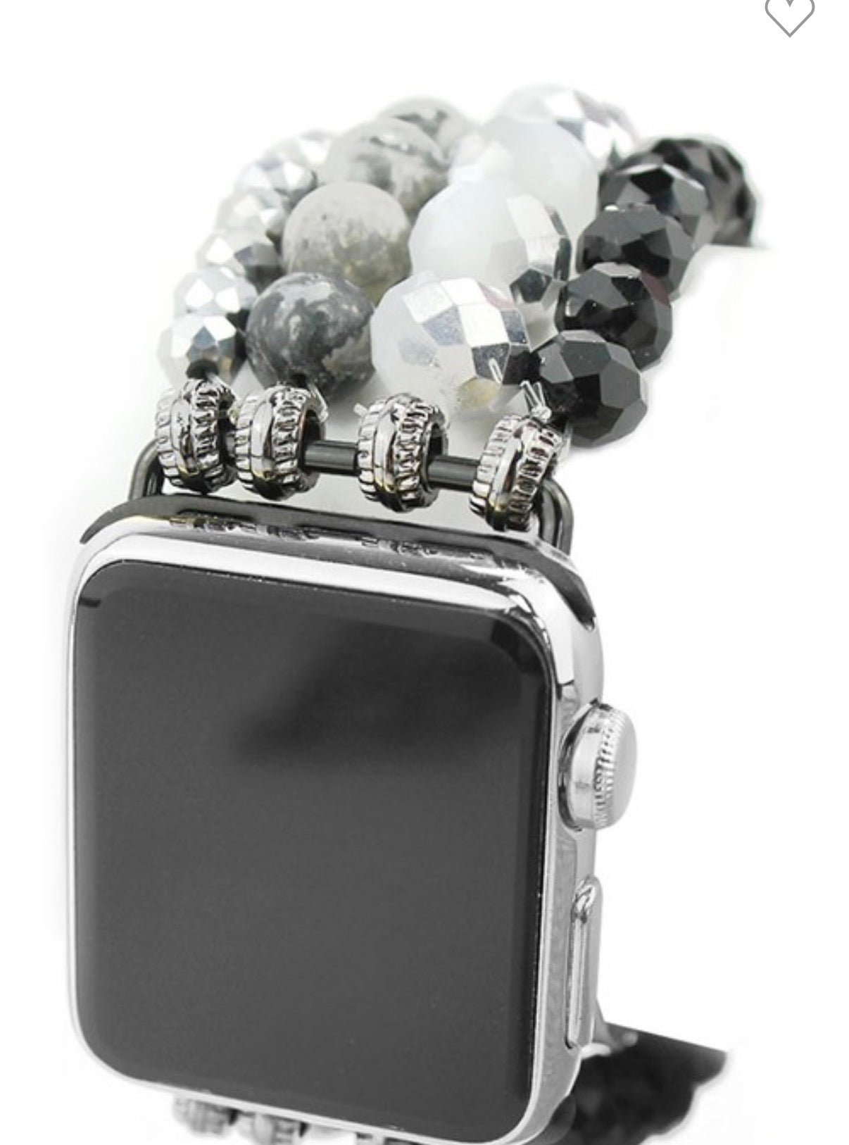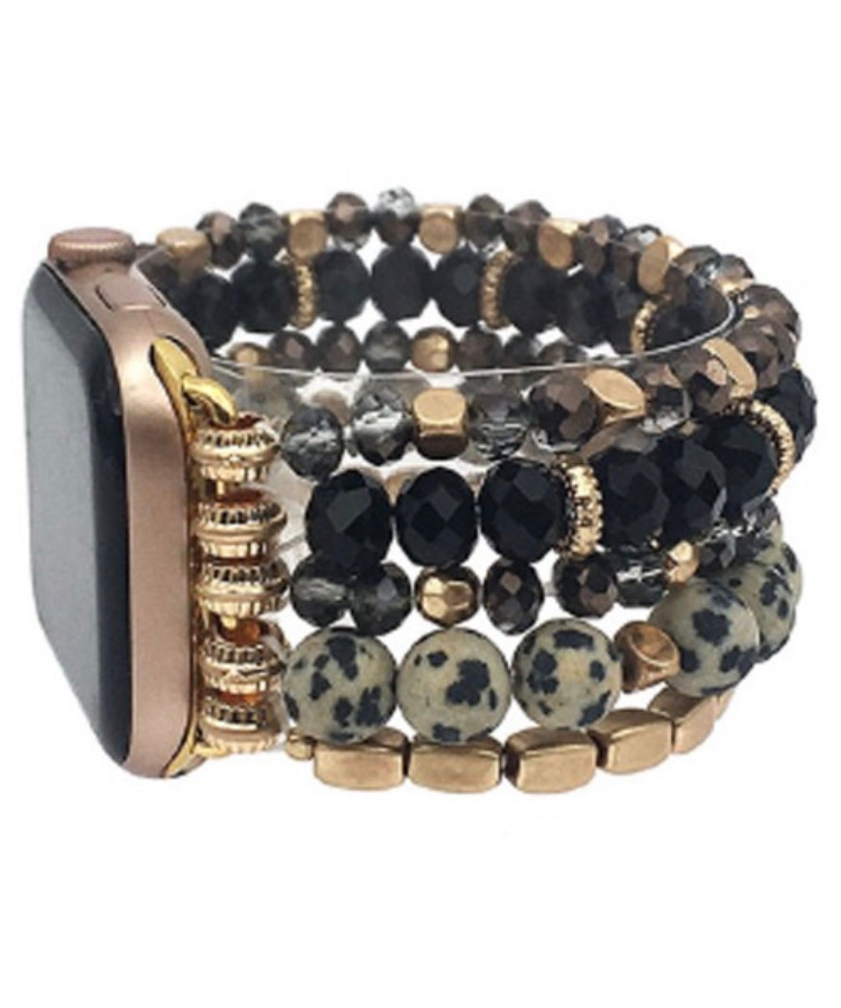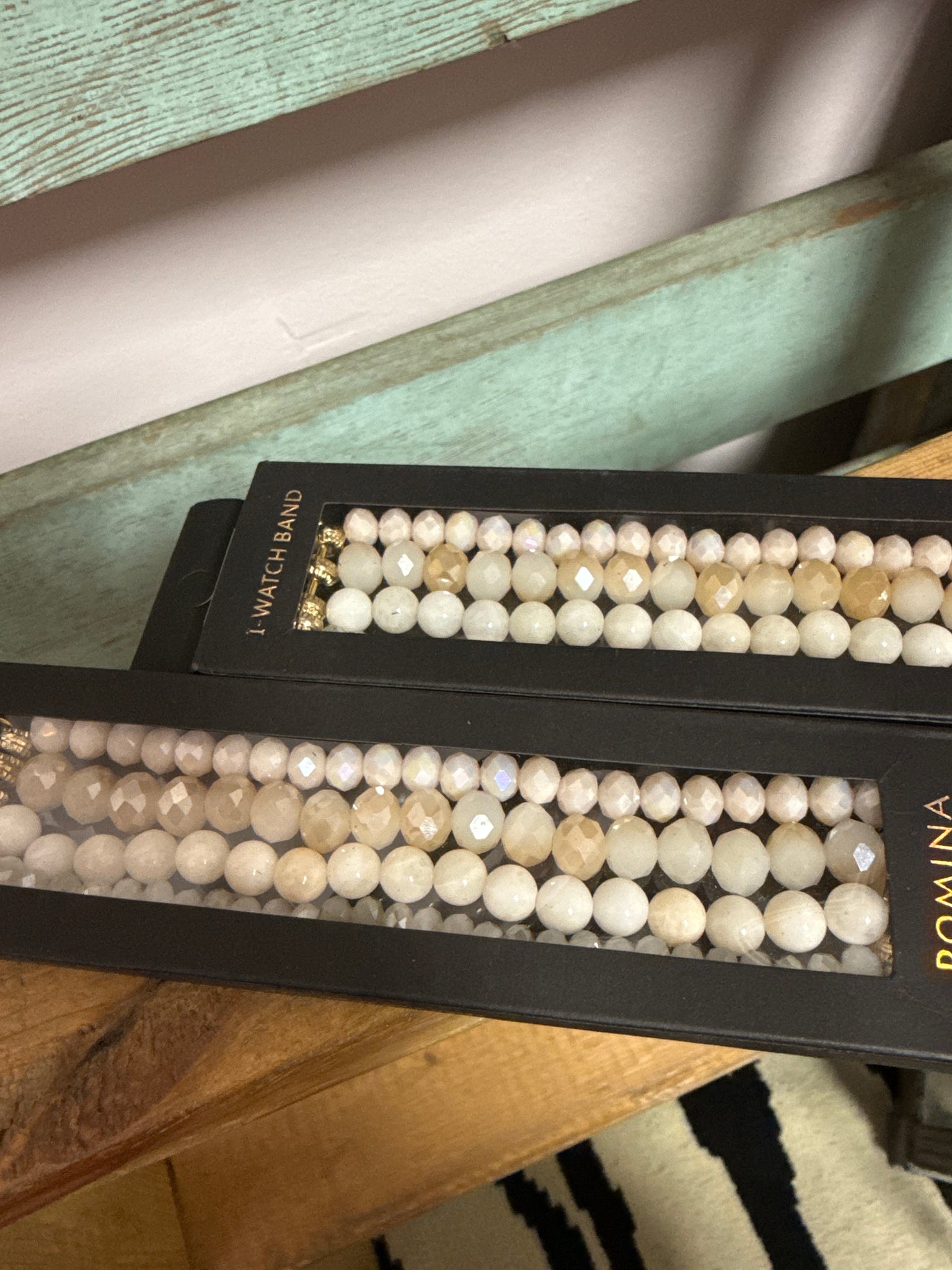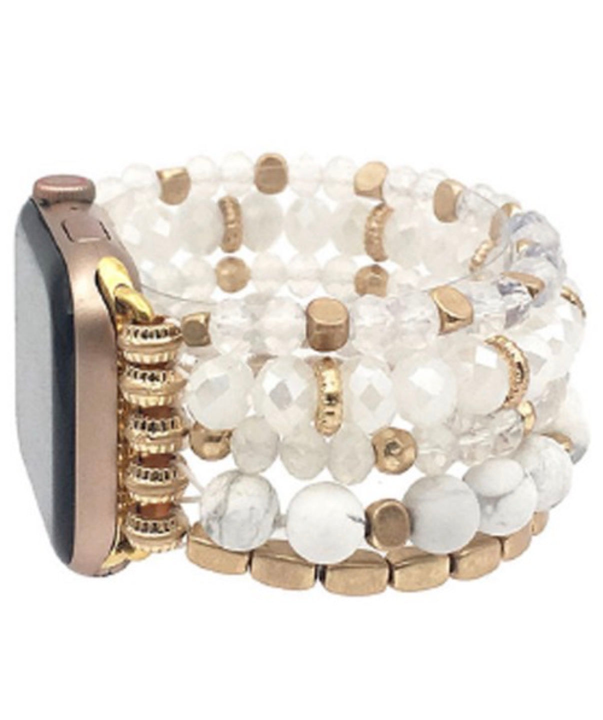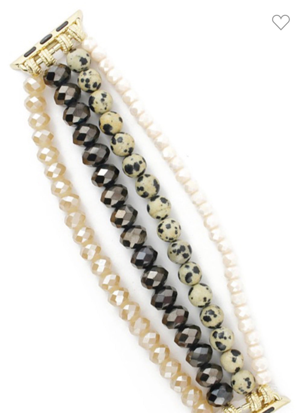 - The perfect accessory to any outfit, this gorgeous five strand watch has a beautiful combination of glass and crystal beads. Included in the strands are natural stone balls with rectangular metal beads.