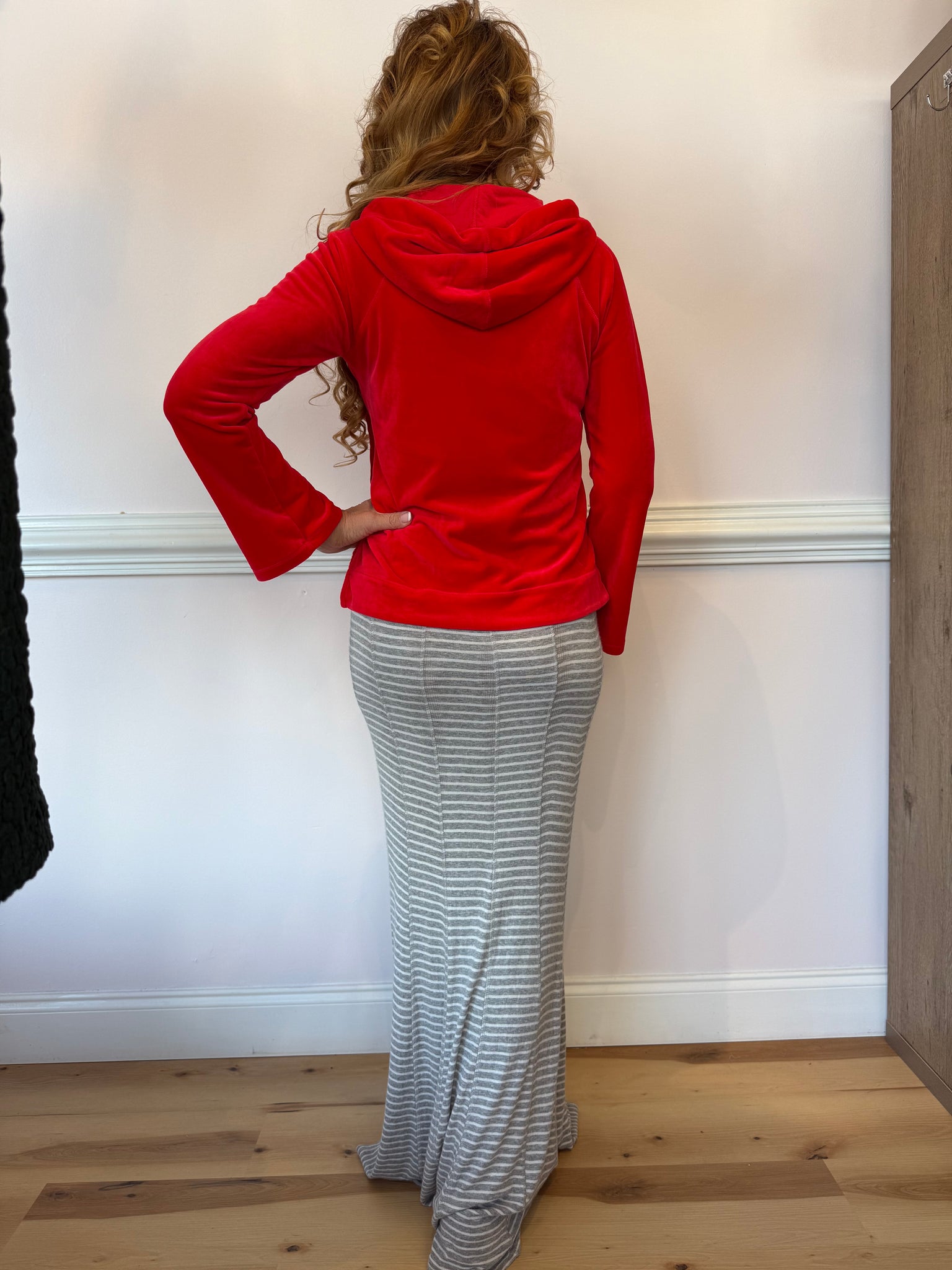 • #7 Anthropologie Saturday Sunday Days Of The Week Red Velvet Velour Hoodie Top with Ties - Size XS - $58