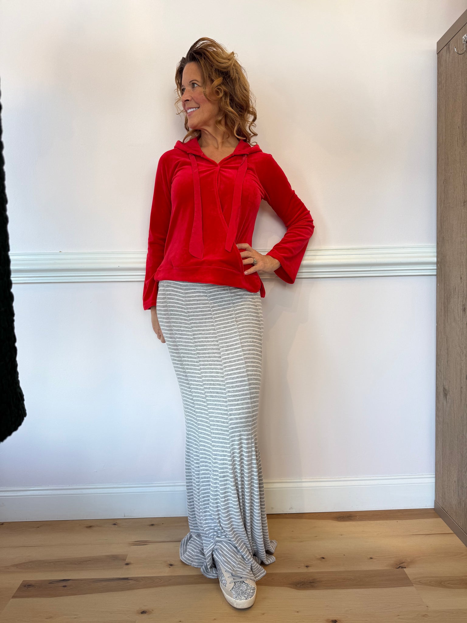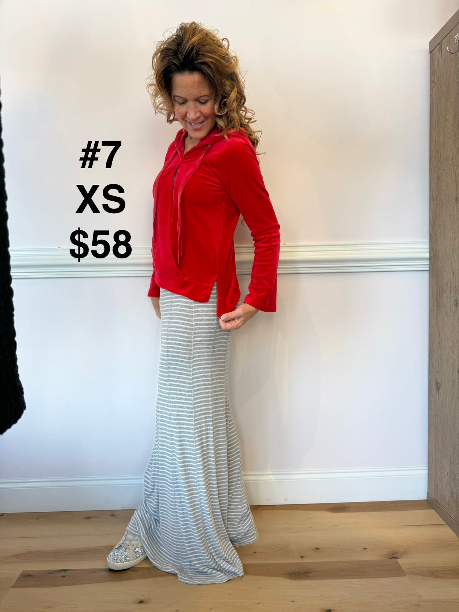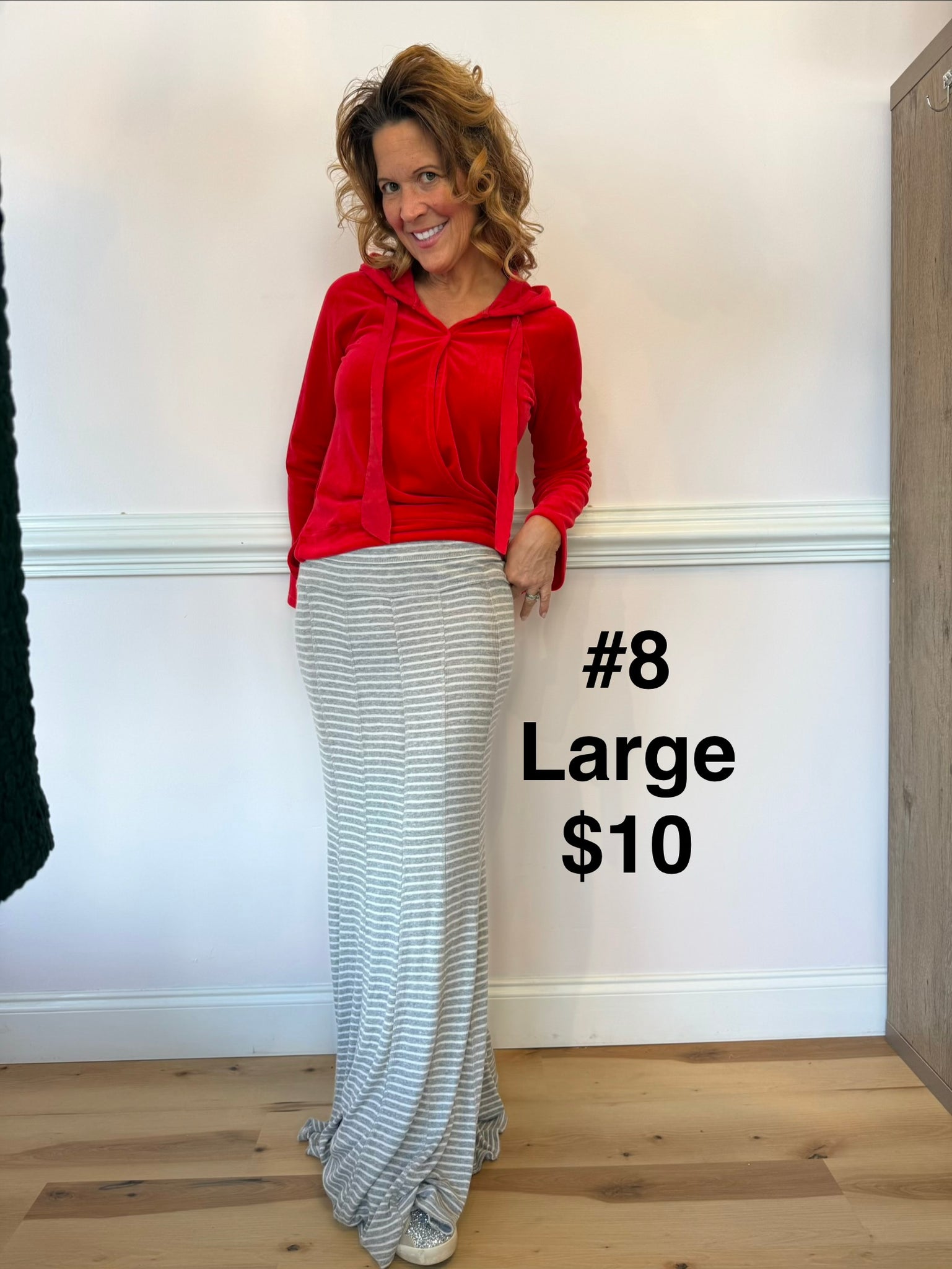 • #8 Anthropologie Bordeaux Grey White Stripe Knit Maxi Skirt - Large - $10