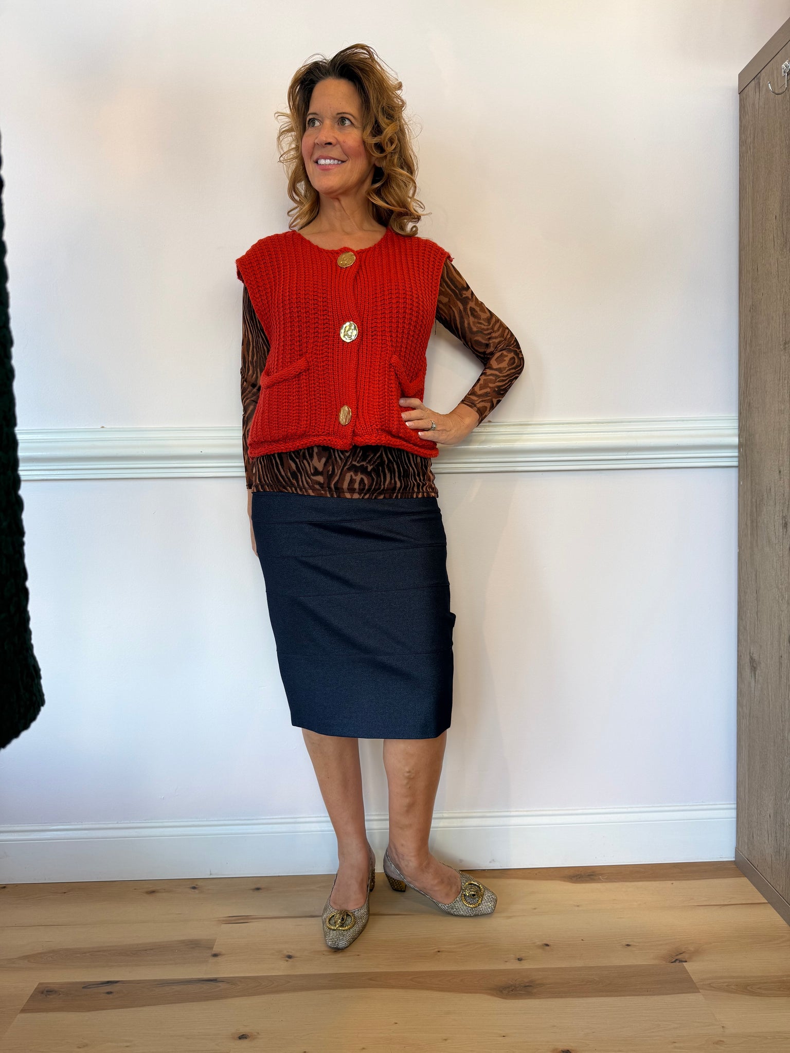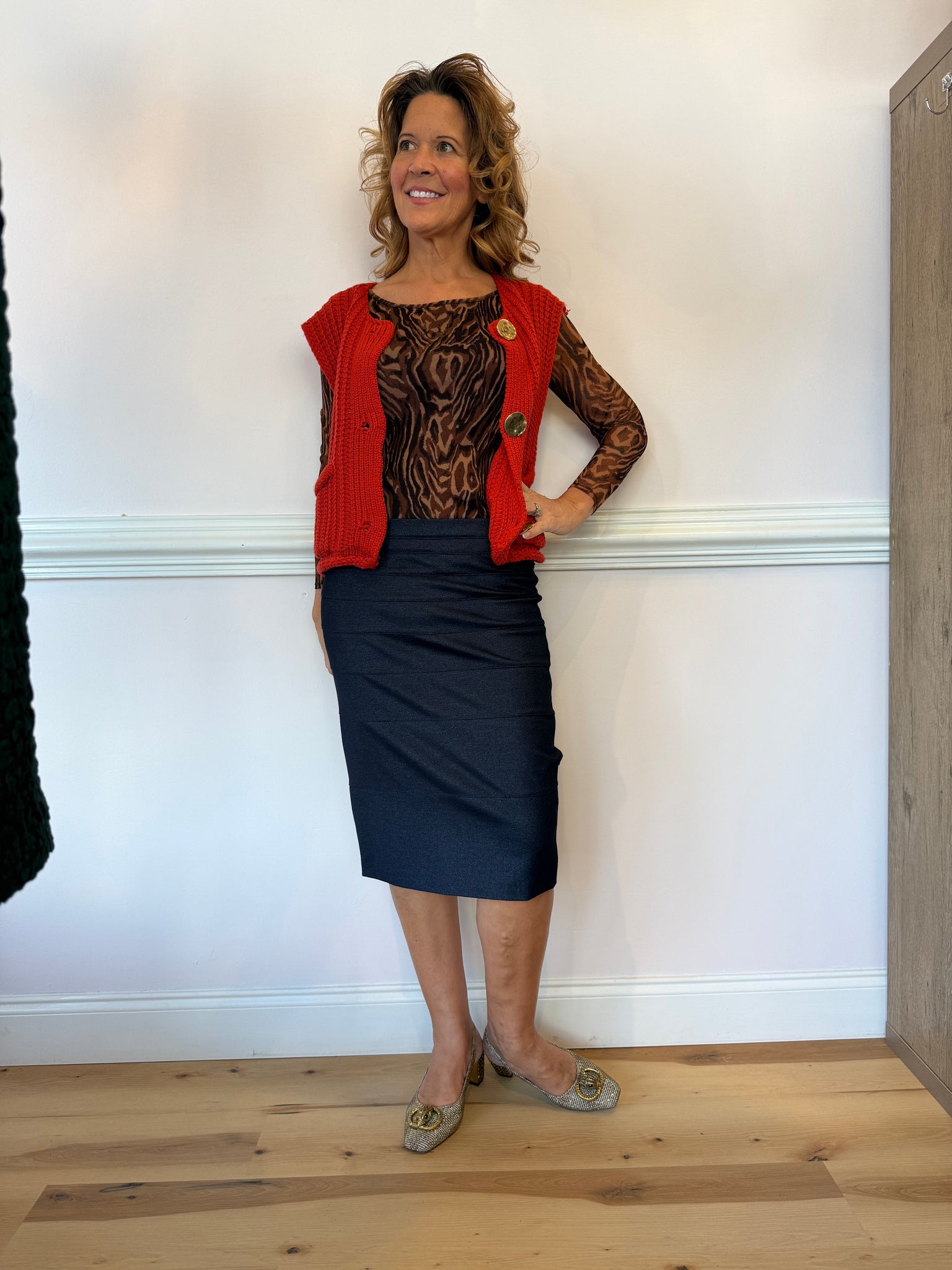• #3 Thalian Stretch Denim Pencil Skirt - Medium - $28 (This skirt has a small hole in the side seam that will need to be mended.  I am pointing to it in the photo.)