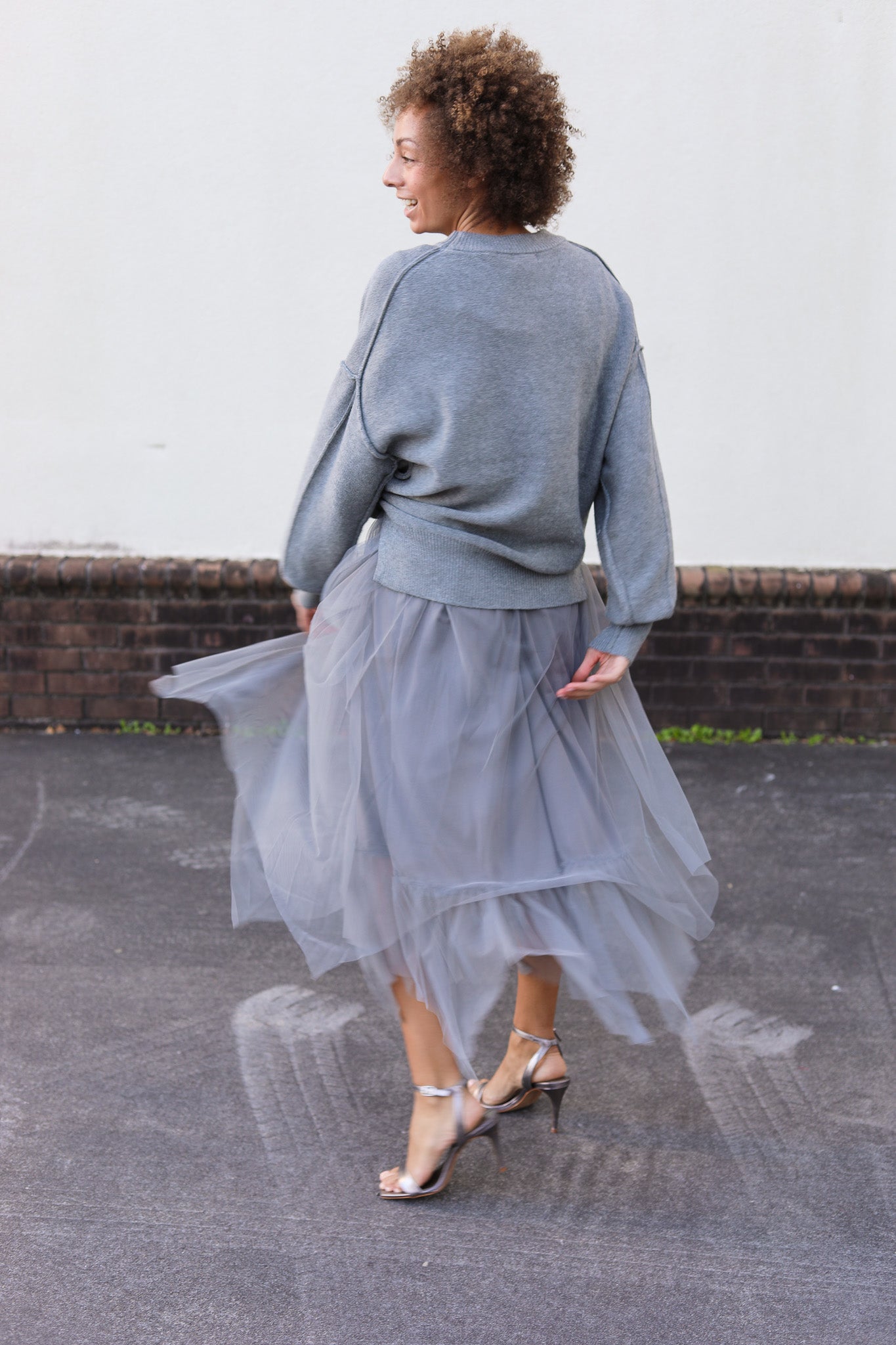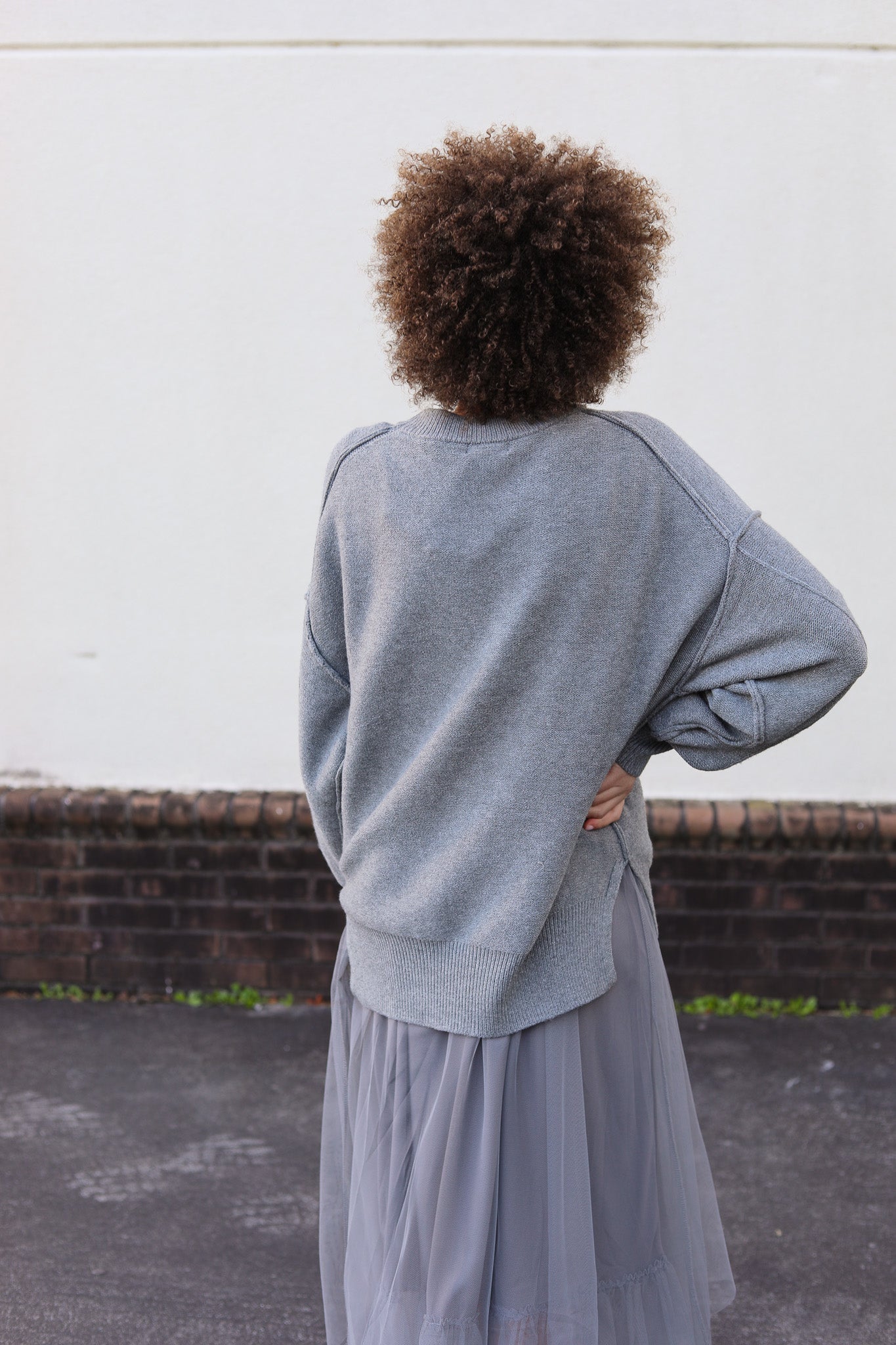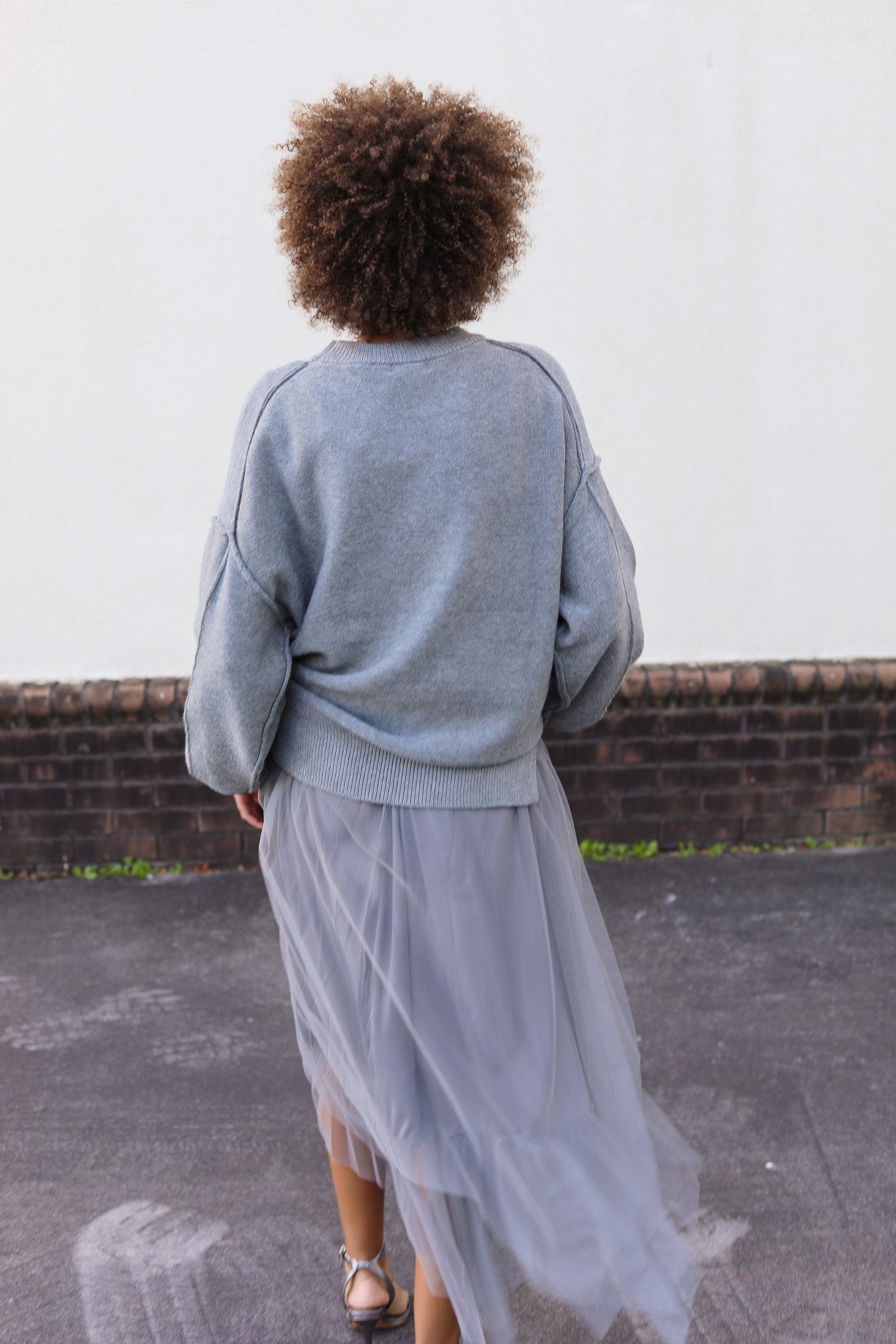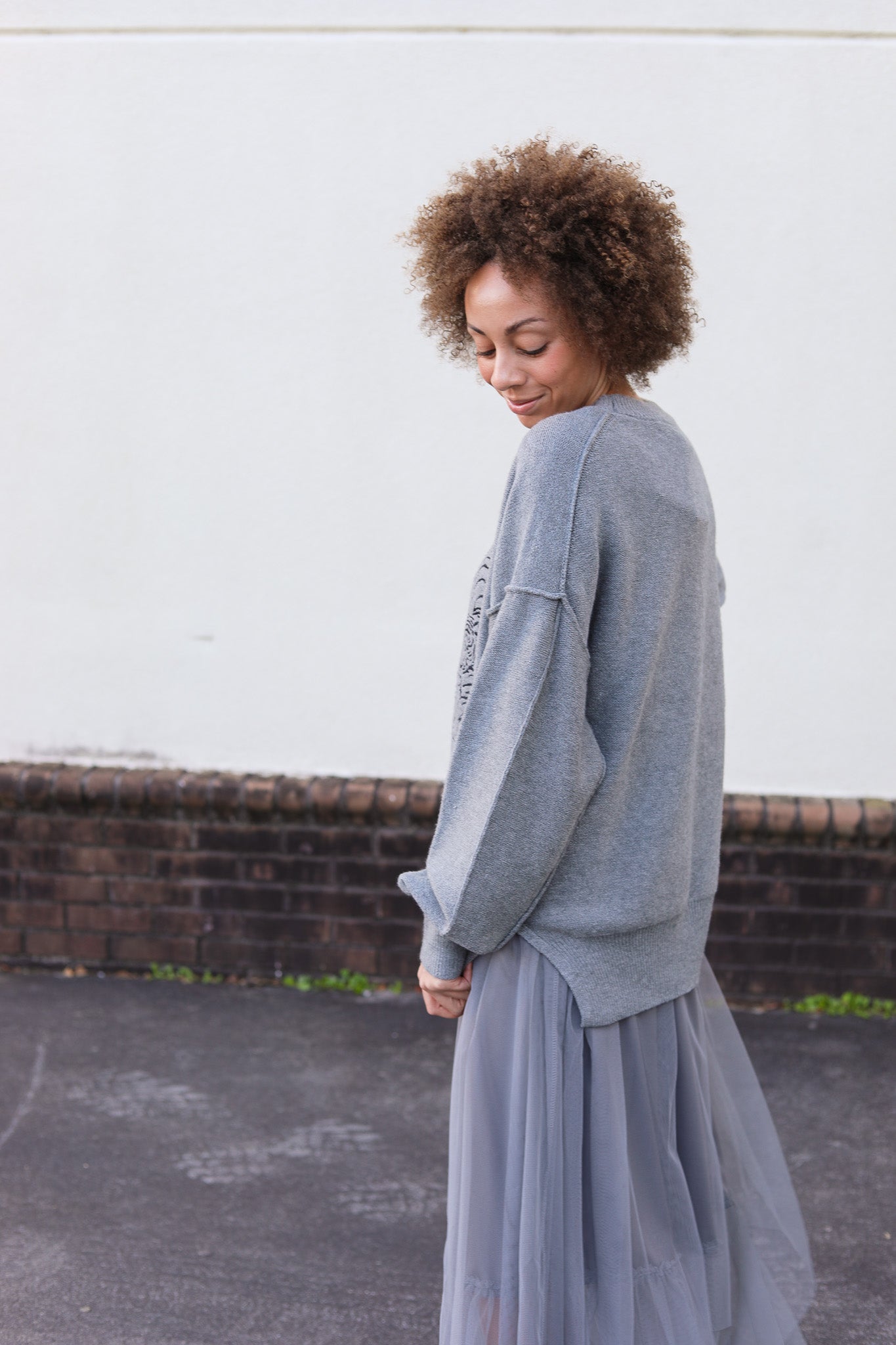 Soft, cozy, and effortlessly cool — this relaxed knit sweater features embroidered tiger details across the front for an elevated casual look. Designed with a crew neckline, drop shoulders, and side-split hem for easy layering.