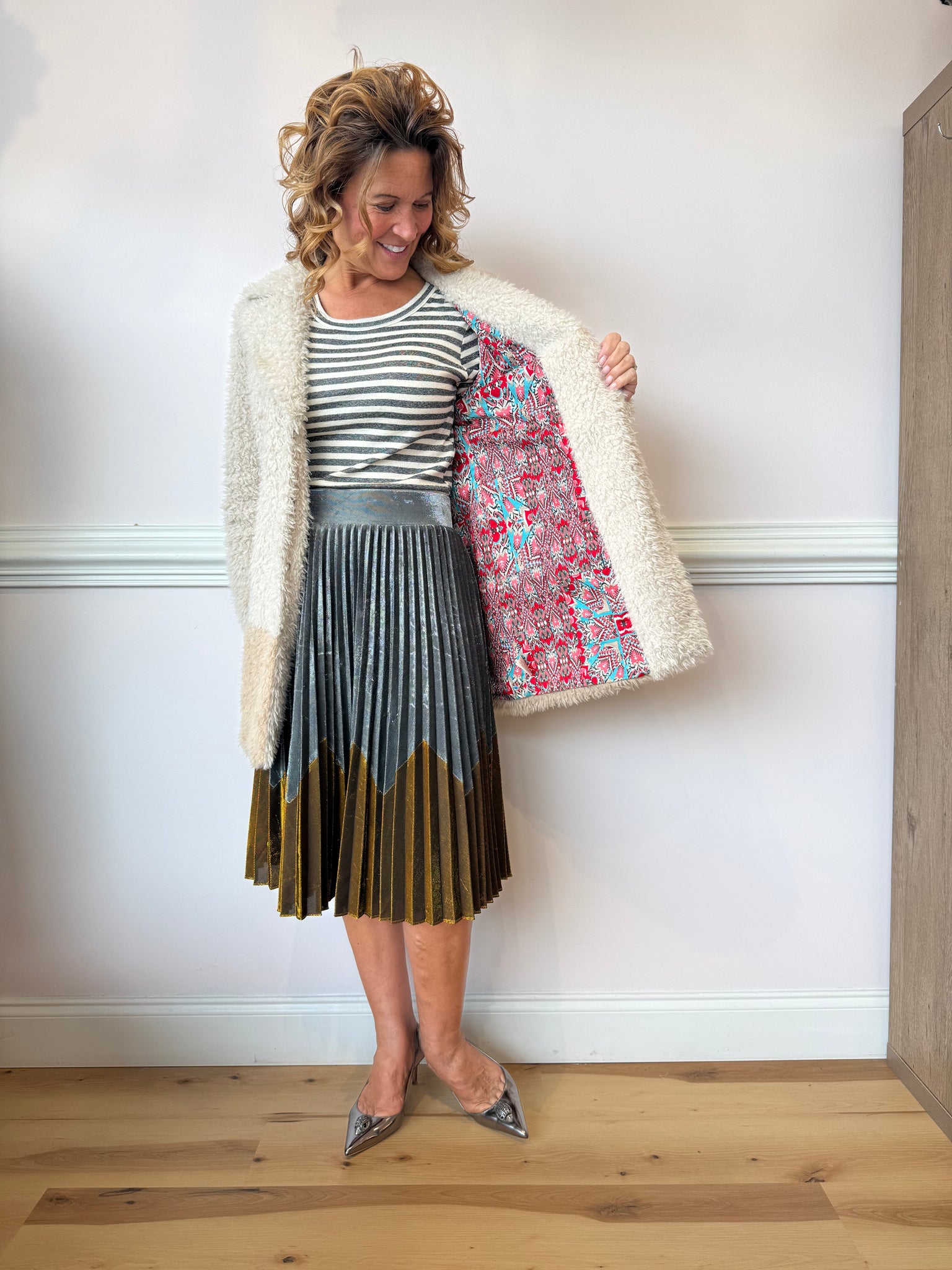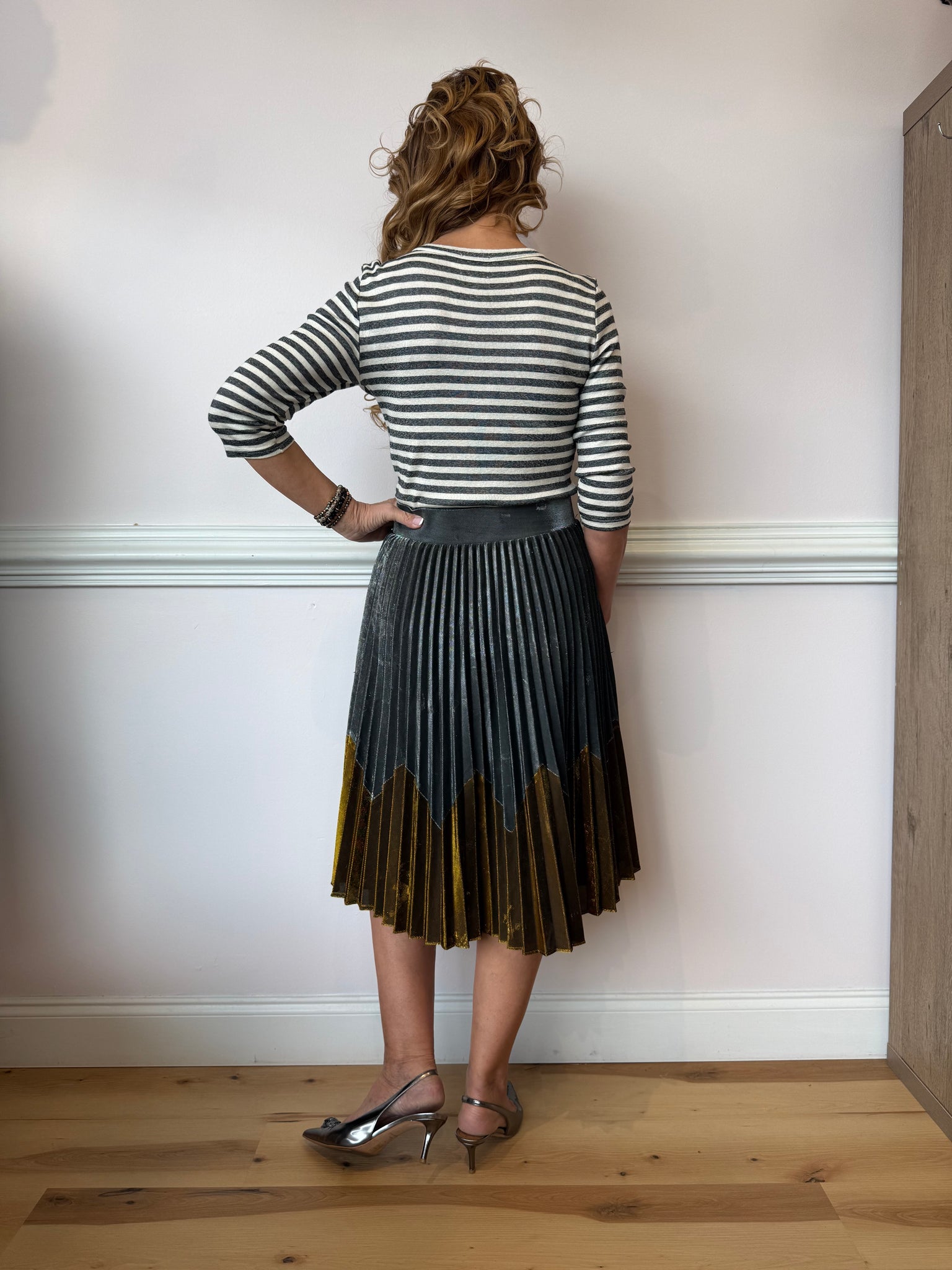 • #7 Anthropologie HD In Paris Silver Gold Pleated Skirt with elastic waistband - Medium - $18 (has picks and snags due to the delicate fabric of the skirt)